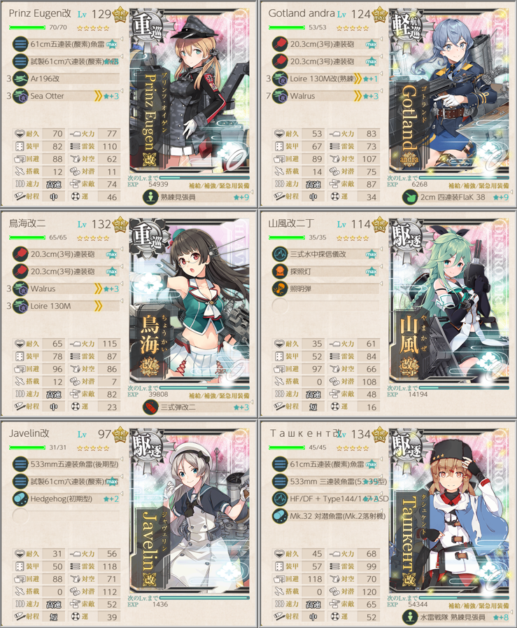 撃破編成では対潜は2人にしてタシュケント火力をあげています。