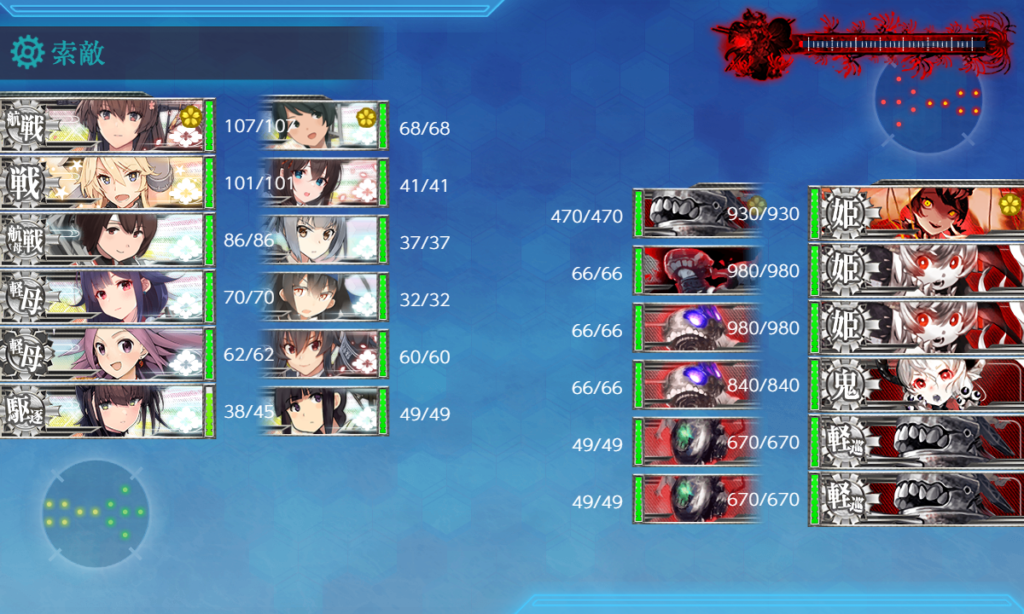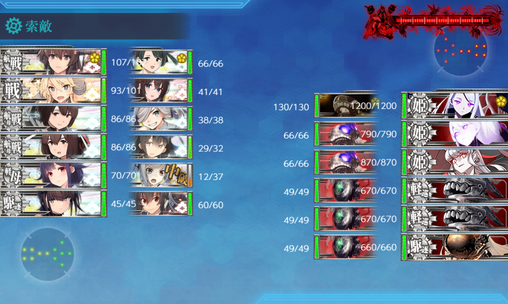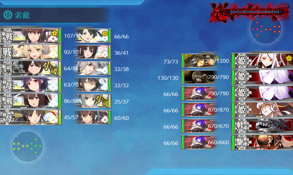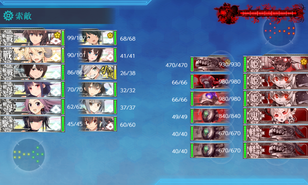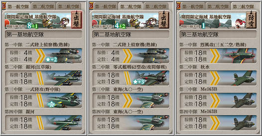削り終わって装甲破砕を終わってから一度戦いを挑んだらボコボコにやられたため装甲破砕を実施。その後数回挑むも航空戦で優勢が取れなかったため戦闘機を増やしました。