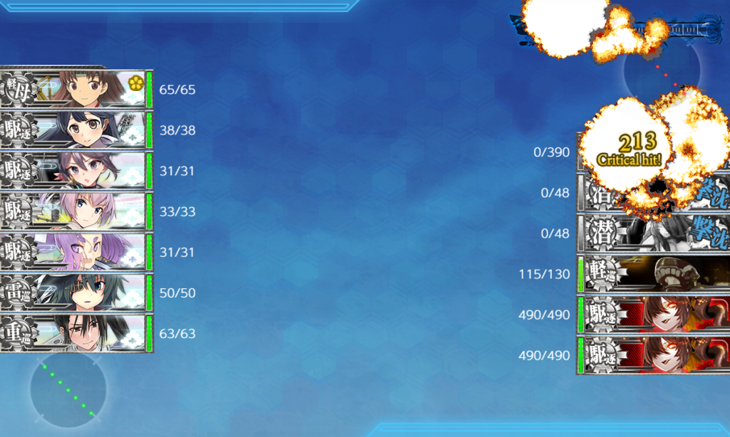 ボスは潜水艦なこともあり削りもボス撃破は用意。S勝利を狙うことをあきらめて攻略を進めました。ラスダンも先制対潜の時点でゲージ破壊に成功しました。